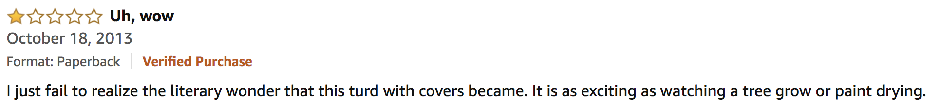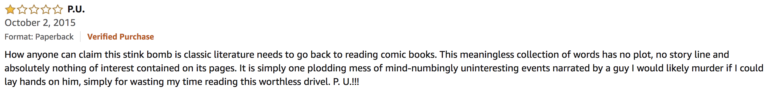 Book reviews range from heartwarmingly positive (“A masterpiece!”), to truly insulting (“A turd with a cover.”). Most authors will have their time with both, and it’s important to remember you aren’t alone in that. There isn’t a single Pulitzer Prize Winner on Amazon that’s gotten by without gathering plenty of harsh commentary and one-star reviews. In fact, one-star ratings make up 16% of all reviews for the 2017 winner, Less.